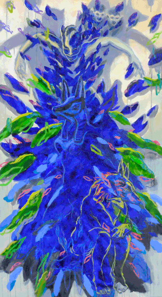Largescale canvasses in Oil show figures, that are threatening to move out on you.